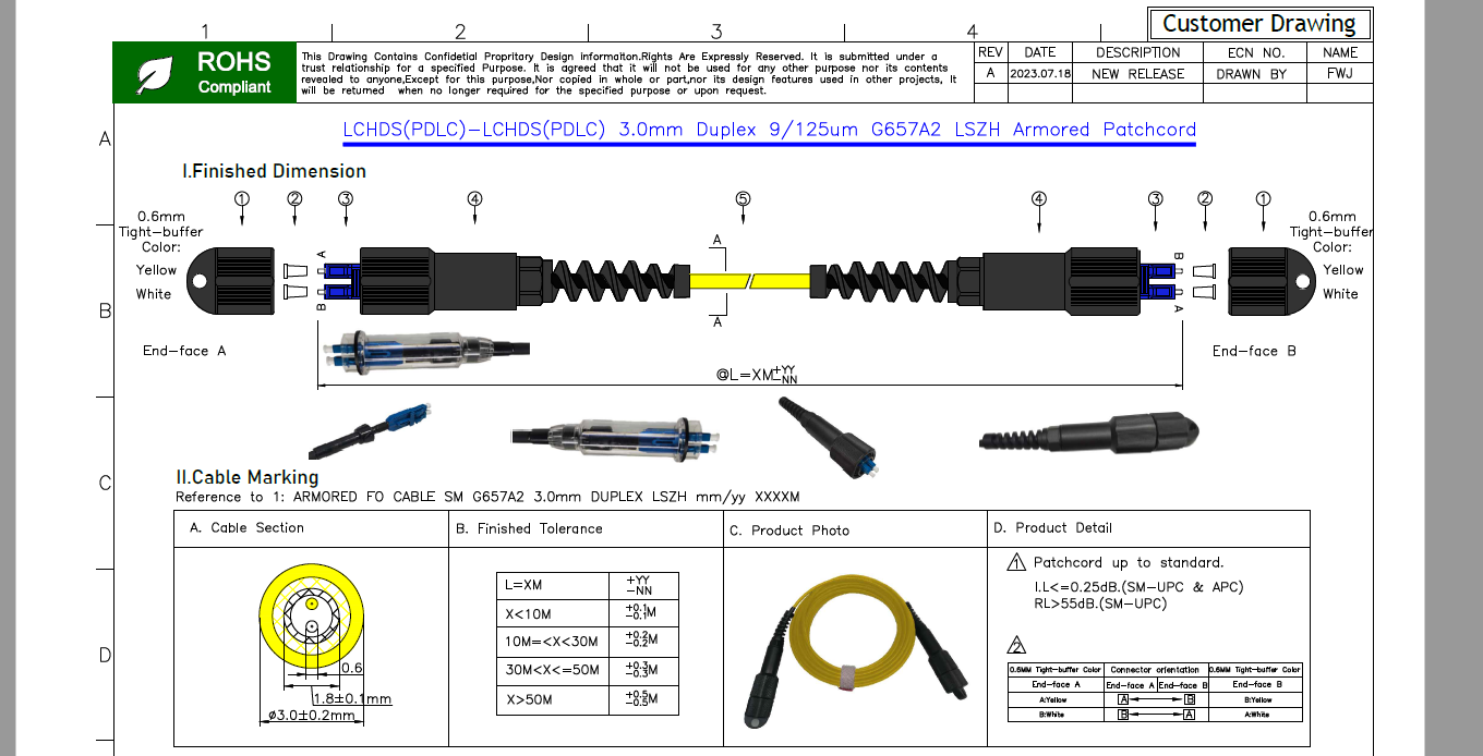 200mtr LC-LC Round Armoured Cable 3mm SM Yellow – Armoured cable -with LC Unib